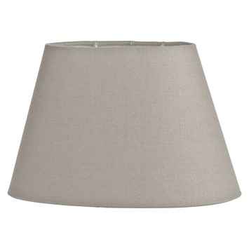 De lampenkap Almeria ovaal grijs is een mooie lampenkap. De lampenkap heeft een ovale vorm en loopt taps toe. De bovenkant van de kap heeft een diameter van 15 centimeter, de onderkant heeft een diameter van 25 centimeter en de kap is 15 centimeter hoog. De lampenkap is gemaakt van grijs katoen.
