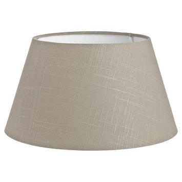 De lampenkap linnen conisch middel beige is een mooie lampenkap. De lampenkap heeft een conische vorm en loopt taps toe. De bovenkant van de kap heeft een diameter van 20 centimeter, de onderkant heeft een diameter van 30 centimeter en de kap is 17 centimeter hoog. De lampenkap is gemaakt van beige katoen.