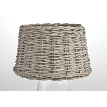 De lampenkap rotan conisch middel grijs is een mooie lampenkap. De lampenkap heeft een conische vorm en loopt taps toe. De bovenkant van de kap heeft een diameter van 20 centimeter, de onderkant heeft een diameter van 25 centimeter en de kap is 16 centimeter hoog. De lampenkap is gemaakt van grijs gekleurd rotan.