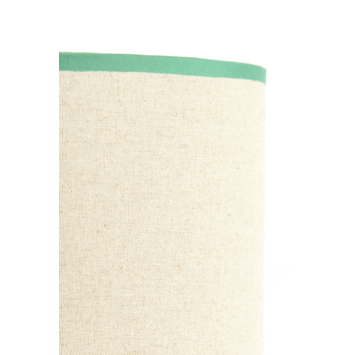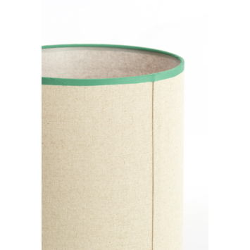 De Theo-Bert Pot lampenkap cilinder beige met groen rand Ø 23 cm combineert eenvoud met een subtiele kleurtoets. Het zachte beige in combinatie met de groene afwerking geeft de lampenkap een frisse uitstraling die goed aansluit bij zowel moderne als klassieke interieurs. Dankzij de afmetingen van 23 cm in diameter en 27 cm in hoogte is dit een ideale keuze voor een compacte tafellamp of om een kleine lampvoet een nieuwe look te geven. De kap is gemaakt van polyester, wat zorgt voor stevigheid en een nette afwerking. Belangrijk: enkel de lampenkap wordt geleverd, zonder fitting, kabel of lichtbron.