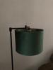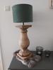De kap heeft een warme en luxe uitstraling. Gekozen voor het mooie groen op een donkerbruine houten voet.