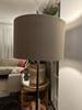 Prachtige lampenkap. Past goed bij de kleur van de muur.