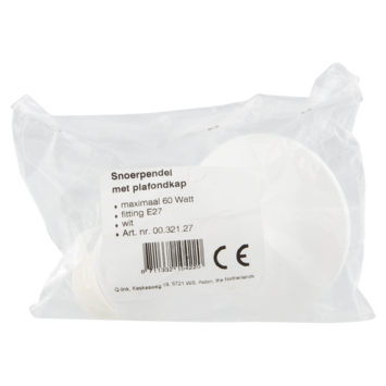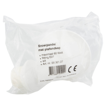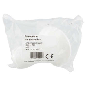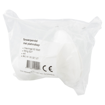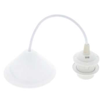 Deze witte lamppendel 27 cm is geschikt voor een lamp met lampfitting E27 en een maximaal voltage van 0,26. Deze 27 centimeter lange kunststof lamppendel kan eenvoudig aan het plafond worden gehangen.