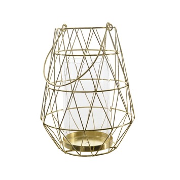 Lantaarn ijzer/glas Ø18x24 cm met goudlook is meer dan alleen een lantaarn. Deze moderne eye catcher staat erg leuk in zowel de vensterbank binnen als buiten op uw picknicktafel, en zal zowel 's avonds als overdag een mooie toevoeging zijn aan uw decoratie. De lantaarn is gemaakt van ijzer en glas en is geheel goudkleurig. Lantaarn ijzer/glas Ø18x24 heeft een diameter van 18 cm en is 24 cm hoog.