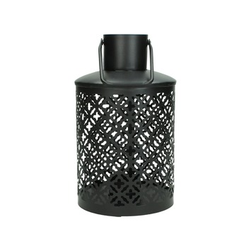 Lantaarn metaal zwart Ø12x21 cm is een decoratieve lantaarn voor binnen of buiten. Zet er een stompkaars is of een paar theelichtjes. De zwarte lantaarn is gemaakt van metaal en heeft een handig handvat. Verplaatsen is dus geen probleem. Lantaarn metaal zwart Ø12x21 cm heeft een diameter van 12 centimeter en is 21 centimeter hoog.