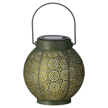 Creëer een gezellige sfeer op de buitentafel met deze groene solar lantaarn. Boven op de lantaarn zit een zonnepaneel wat een totale lichtopbrengst geeft van 6 uur. Zorg ervoor dat de lantaarn voldoende licht krijgt en de warm witte LED lamp in de lantaarn geeft een sfeervol licht. Aan iedere lamp is een handvat bevestigd waardoor je ze ook kunt ophangen in de boom of aan de schutting.