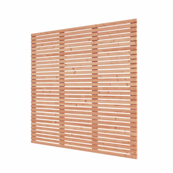 De planken zijn zorgvuldig samengesteld met 32 planken van 1,5 x 4,2 cm, stevig bevestigd aan een robuuste constructie van verticale planken aan de achterkant. Dit zorgt voor een stabiele en duurzame schutting die bestand is tegen verschillende weersomstandigheden. Het lattenscherm is dus niet alleen functioneel, maar ook een decoratieve aanvulling in je tuin.