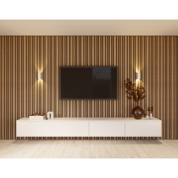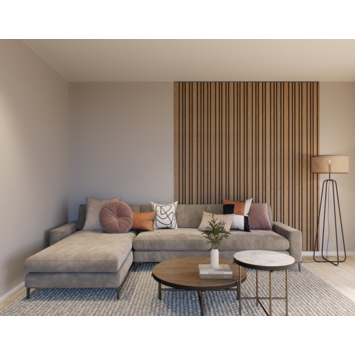 Ontdek Decowall Acoustic Blend: de speelse lattenwand met akoestische eigenschappen. Met zijn diverse breedtes van de latten transformeert Decowall Acoustic Blend elke muur tot een luxueuze blikvanger die direct de aandacht trekt. Of je nu een Scandinavisch, modern, klassiek of Japandi interieur hebt, deze wandbekleding past naadloos in elke stijl en verrijkt je ruimte.