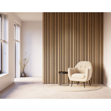 Ontdek Decowall Acoustic Blend: de speelse lattenwand met akoestische eigenschappen. Met zijn diverse breedtes van de latten transformeert Decowall Acoustic Blend elke muur tot een luxueuze blikvanger die direct de aandacht trekt. Of je nu een Scandinavisch, modern, klassiek of Japandi interieur hebt, deze wandbekleding past naadloos in elke stijl en verrijkt je ruimte.