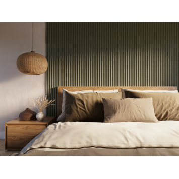 Met het kleurstaal van de lattenwand Decowall salie (artikel 347830) kan je thuis beoordelen of het wandpaneel past bij jouw huis en inrichting