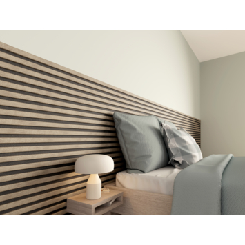 Met het kleurstaal van de lattenwand Decowall vergrijsd eiken (artikel 282444) kan je thuis beoordelen of het wandpaneel past bij jouw huis en inrichting