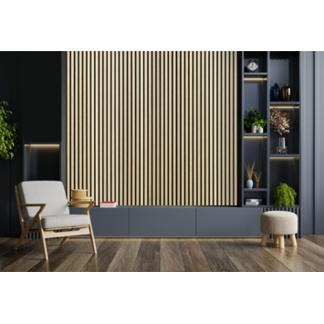 Met de lattenwand creeër je eenvoudig een scandinavisch stijlvol design in jouw huis. Met behulp van de kant en klare panelen kun je in een korte tijd een wand dichtzetten in woonkamer, keuken of slaapkamer en krijg je een warme uitstraling. Het paneel is 244 cm lang en 60,5 cm breed. De vilten achterwand, die gemaakt is van duurzame materialen zoals PET flessen, is zodanig afgewerkt dat er direct met een nieuw paneel verder gewerkt kan worden en de juiste afstand tussen de latten behouden blijft. Op het vilt zitten zwart gekleurde MDF latten die zijn voorzien van echt hout fineer. Iedere afzonderlijke lat is dus uniek. De lattenwand is in meerdere decoren beschikbaar. Het is belangrijk om bij het monteren van de panelen 2mm afstand te houden tussen de verschillende panelen. De vilten onderrug kan namelijk vanwege temperatuurverschillen lichtelijk uitzetten.