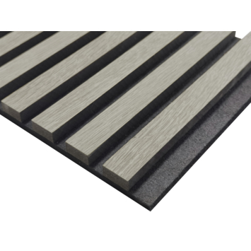 Het paneel is 260 bij 52,6 cm. De houten latten zijn 2,5 cm breed en de ruimte tussen de latten is 1,4 cm. Het vilt is van materiaal zoals gerecyclede PET flessen gemaakt. Op het vilt zitten zwarte MDF latten die zijn voorzien van echt hout fineer. Let op! Hout kan verkleuren in de zon, zorg ervoor dat de panelen beschermd worden tegen overmatig zonlicht. Omdat hout een natuurproduct is, kan het in het begin een geur afgeven. Ventileer uw ruimte en dan zal de geur naar verloop van tijd wegtrekken.
