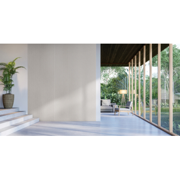 Bevestig de panelen eenvoudig met montagekit (artikel 224573). Het is belangrijk om bij het monteren van de panelen 2mm afstand te houden tussen de verschillende panelen. Hierdoor wordt de juiste afstand tussen de latten behouden. De vilten onderrug kan namelijk vanwege temperatuurverschillen lichtelijk uitzetten.