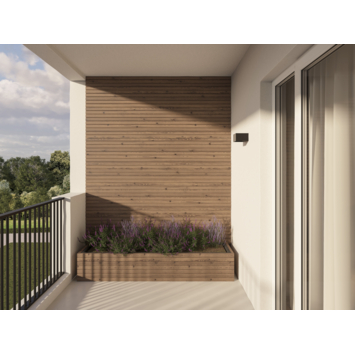 De lattenwand buiten creeërt een eigentijdse en warme sfeer en wordt gebruikt voor o.a. balkon, veranda, overkapping etc.