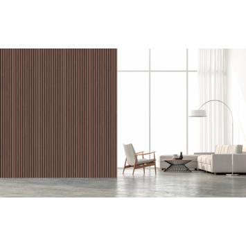 Met het kleurstaal van de lattenwand walnoot (artikel 219403) kan je thuis beoordelen of het wandpaneel past bij jouw huis en inrichting.