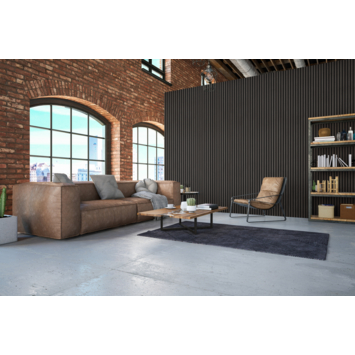 Met het kleurstaal van de lattenwand zwart eiken (artikel 220343) kan je thuis beoordelen of het wandpaneel past bij jouw huis en inrichting.