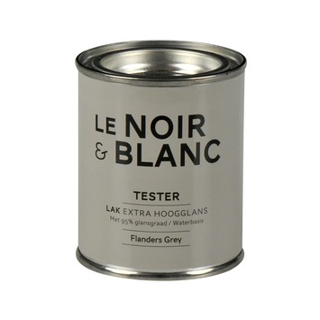 De Le Noir & Blanc lak extra hoogglans flanders grey 100 ml maakt onderdeel uit van een zeer bijzondere serie verven in fraaie vergrijsde tinten. De lak op waterbasis droogt snel en is reukarm. Daarnaast is de lak krasvast en heeft de lak een extra hoogglanzende afwerking. De lak is met name bedoeld voor gebruik binnenshuis. De lak is geschikt voor deuren en kozijnen, maar ook voor meubelen of andere decoratieve toepassingen. De lak kan eenvoudig worden aangebracht met een kwast of een roller. Het blikje is een testerverpakking en bevat 100 milliliter verf in de kleur flanders grey. Zo heb je de mogelijkheid om thuis te bekijken of de lak qua kleur en kwaliteit bevalt.