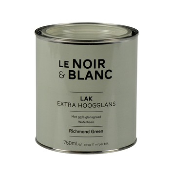 De Le Noir & Blanc lak extra hoogglans richmond green 750 ml maakt onderdeel uit van een zeer bijzondere serie verven in fraaie vergrijsde tinten. De lak op waterbasis droogt snel en is reukarm. Daarnaast is de lak krasvast en heeft de lak een extra hoogglanzende afwerking. Door de toevoeging van hoogwaardige grondstoffen wordt een rijke lak gecreëerd die een ware toevoeging aan uw interieur vormt. De lak is met name bedoeld voor gebruik binnenshuis. De lak is geschikt voor deuren en kozijnen, maar ook voor meubelen of andere decoratieve toepassingen. De lak kan eenvoudig worden aangebracht met een kwast of een roller. Het blik bevat 750 milliliter lak in de kleur richmond green, dit is genoeg voor een oppervlakte van zo'n 11 vierkante meter.