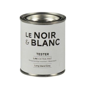 De Le Noir & Blanc lak extra mat island grey 100 ml maakt onderdeel uit van een zeer bijzondere serie verven in fraaie vergrijsde tinten. De lak op waterbasis droogt snel en is reukarm. Daarnaast is de lak krasvast en heeft de lak een extra matte afwerking. De lak is met name bedoeld voor gebruik binnenshuis. De lak is geschikt voor deuren en kozijnen, maar ook voor meubelen of andere decoratieve toepassingen. De lak kan eenvoudig worden aangebracht met een kwast of een roller. Het blikje is een testerverpakking en bevat 100 milliliter verf in de kleur island grey. Zo heb je de mogelijkheid om thuis te bekijken of de lak qua kleur en kwaliteit bevalt.