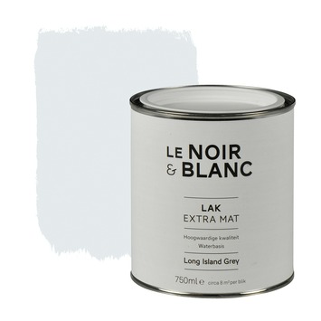 De Le Noir & Blanc lak extra mat island grey 750 ml maakt onderdeel uit van een zeer bijzondere serie verven in fraaie vergrijsde tinten. De lak op waterbasis droogt snel en is reukarm. Daarnaast is de lak krasvast en heeft de lak een extra matte afwerking. Voor een extra mat effect breng je de verf in dikkere lagen aan. Door de toevoeging van hoogwaardige grondstoffen wordt een rijke lak gecreëerd die een ware toevoeging aan uw interieur vormt. De lak is met name bedoeld voor gebruik binnenshuis. De lak is geschikt voor deuren en kozijnen, maar ook voor meubelen of andere decoratieve toepassingen. De lak kan eenvoudig worden aangebracht met een kwast of een roller. Het blik bevat 750 milliliter lak in de kleur island grey, dit is genoeg voor een oppervlakte van zo'n 8 vierkante meter.