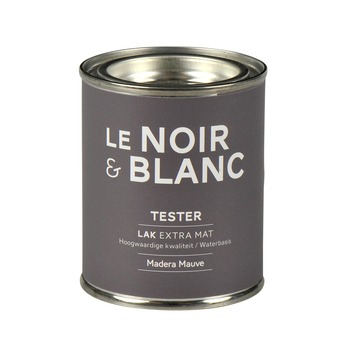 De Le Noir & Blanc lak extra mat madera mauve 100 ml maakt onderdeel uit van een zeer bijzondere serie verven in fraaie vergrijsde tinten. De lak op waterbasis droogt snel en is reukarm. Daarnaast is de lak krasvast en heeft de lak een extra matte afwerking. De lak is met name bedoeld voor gebruik binnenshuis. De lak is geschikt voor deuren en kozijnen, maar ook voor meubelen of andere decoratieve toepassingen. De lak kan eenvoudig worden aangebracht met een kwast of een roller. Het blikje is een testerverpakking en bevat 100 milliliter verf in de kleur madera mauve. Zo heb je de mogelijkheid om thuis te bekijken of de lak qua kleur en kwaliteit bevalt.