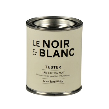 De Le Noir & Blanc lak extra mat sand white 100 ml maakt onderdeel uit van een zeer bijzondere serie verven in fraaie vergrijsde tinten. De lak op waterbasis droogt snel en is reukarm. Daarnaast is de lak krasvast en heeft de lak een extra matte afwerking. De lak is met name bedoeld voor gebruik binnenshuis. De lak is geschikt voor deuren en kozijnen, maar ook voor meubelen of andere decoratieve toepassingen. De lak kan eenvoudig worden aangebracht met een kwast of een roller. Het blikje is een testerverpakking en bevat 100 milliliter verf in de kleur sand white. Zo heb je de mogelijkheid om thuis te bekijken of de lak qua kleur en kwaliteit bevalt.