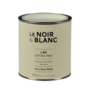De Le Noir & Blanc lak extra mat sand white 750 ml maakt onderdeel uit van een zeer bijzondere serie verven in fraaie vergrijsde tinten. De lak op waterbasis droogt snel en is reukarm. Daarnaast is de lak krasvast en heeft de lak een extra matte afwerking. Voor een extra mat effect breng je de verf in dikkere lagen aan. Door de toevoeging van hoogwaardige grondstoffen wordt een rijke lak gecreëerd die een ware toevoeging aan uw interieur vormt. De lak is met name bedoeld voor gebruik binnenshuis. De lak is geschikt voor deuren en kozijnen, maar ook voor meubelen of andere decoratieve toepassingen. De lak kan eenvoudig worden aangebracht met een kwast of een roller. Het blik bevat 750 milliliter lak in de kleur sand white, dit is genoeg voor een oppervlakte van zo'n 8 vierkante meter.
