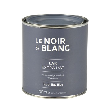 De Le Noir & Blanc lak extra mat south bay blue 750 ml maakt onderdeel uit van een zeer bijzondere serie verven in fraaie vergrijsde tinten. De lak op waterbasis droogt snel en is reukarm. Daarnaast is de lak krasvast en heeft de lak een extra matte afwerking. Voor een extra mat effect breng je de verf in dikkere lagen aan. Door de toevoeging van hoogwaardige grondstoffen wordt een rijke lak gecreëerd die een ware toevoeging aan uw interieur vormt. De lak is met name bedoeld voor gebruik binnenshuis. De lak is geschikt voor deuren en kozijnen, maar ook voor meubelen of andere decoratieve toepassingen. De lak kan eenvoudig worden aangebracht met een kwast of een roller. Het blik bevat 750 milliliter lak in de kleur south bay blue, dit is genoeg voor een oppervlakte van zo'n 8 vierkante meter.