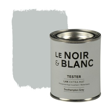 De Le Noir & Blanc lak extra mat south grey 100 ml maakt onderdeel uit van een zeer bijzondere serie verven in fraaie vergrijsde tinten. De lak op waterbasis droogt snel en is reukarm. Daarnaast is de lak krasvast en heeft de lak een extra matte afwerking. De lak is met name bedoeld voor gebruik binnenshuis. De lak is geschikt voor deuren en kozijnen, maar ook voor meubelen of andere decoratieve toepassingen. De lak kan eenvoudig worden aangebracht met een kwast of een roller. Het blikje is een testerverpakking en bevat 100 milliliter verf in de kleur south grey. Zo heb je de mogelijkheid om thuis te bekijken of de lak qua kleur en kwaliteit bevalt.