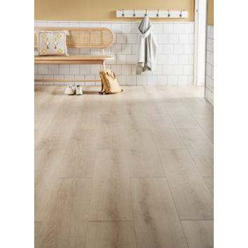 Gemaakt van HDF is dit laminaat supersterk. Een aangebrachte nerfstructuur en V-groeven geven dit laminaat daarnaast het uiterlijk van een authentieke houten vloer. De V-groef van dit laminaat oogt overigens niet alleen luxueus maar is ook van praktisch nut doordat hij kleine hoeveelheden stof opvangt. Hierdoor zullen er minder krassen op het laminaat ontstaan en blijft het langer mooi. Overigens is deze vloer dankzij het 5G clicksysteem snel en makkelijk gelegd. Kort gezegd is het laminaat een prachtige vloer in meerdere opzichten. De kliklaminaat vloer is geschikt voor zowel intensief woongebruik als voor licht commercieel gebruik. Dit betekent dat de vloer geschikt is voor bijvoorbeeld de gang, woonkamer of kantoor aan huis.