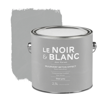 Met muurverf beton effect steel grey 2,5 liter van Le Noir & Blanc haal je iets bijzonders in huis waarmee je heel eenvoudig en snel een bijzonder betoneffect maakt. Deze muurverf heeft een stoere betonfinish voor een robuuste, industriële betonlook op je muur en in je interieur. Het effect wordt versterkt door de muurverf in twee lagen aan te brengen met een verfroller of blokkwast en daarna losjes uit te strijken met een spaan of spatel. Voor toepassing op droge ondergronden zoals schuur- en pleisterwerk, beton en cement, gipsplaat, goed vastzittend behang, board en met muurverf behandelde oppervlakken.
