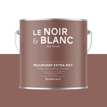 Met Le Noir & Blanc muurverf blushed terra extra mat 2,5 liter geef je je muur een diepe en poederige uitstraling. De extra matte afwerking zorgt voor een zachte look zonder glans, waardoor kleuren rustig en vol overkomen. Deze verf kun je in de bouwmarkt of online laten mengen in elke kleur en is geschikt voor muren in droge ruimtes binnenshuis.