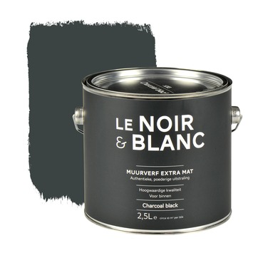 De Le Noir & Blanc muurverf extra mat charcoal black 2,5 l maakt onderdeel uit van een zeer bijzondere serie verven in fraaie vergrijsde tinten. Door de toepassing van hoogwaardige grondstoffen wordt een rijke verf gecreëerd. De extra matte muurverf geeft bij gebruik in 2 lagen een poederig effect, net zoals krijtverf. Hiermee is de verf een optimale verfraaiing voor je woning. Erg mooi binnenshuis voor deuren, open trappen en lambriseringen. Deze muurverf is eenvoudig aan te brengen met een blokkwast. Het blik bevat 2,5 liter muurverf in de kleur charcoal black, dit is genoeg voor een oppervlakte van zo'n 20 vierkante meter bij het aanbrengen van 1 laag.