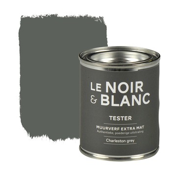 De Le Noir & Blanc muurverf extra mat charleston grey 100 ml maakt onderdeel uit van een zeer bijzondere serie verven in fraaie vergrijsde tinten. De extra matte muurverf geeft de wand een poederzachte touch. Iedere kleur uit het palet krijgt door deze zachtheid vanzelf een rijke maar ingetogen uitstraling. Hiermee is de verf een optimale verfraaiing voor je woning. Deze muurverf is eenvoudig aan te brengen met een roller of blokkwast en geeft bij twee lagen een poederig effect, net zoals krijtverf.