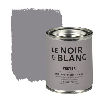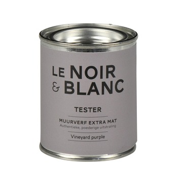 De Le Noir & Blanc muurverf extra mat vineyard purple 100 ml maakt onderdeel uit van een zeer bijzondere serie verven in fraaie vergrijsde tinten. Door de toepassing van hoogwaardige grondstoffen wordt een rijke verf gecreëerd. De extra matte muurverf geeft bij gebruik in 2 lagen een poederig effect, net zoals krijtverf. Hiermee is de verf een optimale verfraaiing voor je woning. Erg mooi binnenshuis voor deuren, open trappen en lambriseringen. Deze muurverf is eenvoudig aan te brengen met een blokkwast. Het blikje is een testerverpakking en bevat 100 milliliter verf in de kleur vineyard purple. Zo heb je de mogelijkheid om thuis te bekijken of de lak qua kleur en kwaliteit bevalt.