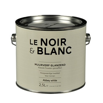 De Le Noir & Blanc muurverf glanzend abbey white 2,5 l maakt onderdeel uit van een zeer bijzondere serie verven in fraaie vergrijsde tinten. Door de toepassing van hoogwaardige grondstoffen wordt een rijke verf gecreëerd. De muurverf geeft een klassiek fluwelen glanseffect en is een optimale verfraaiing voor je woning. Erg mooi binnenshuis voor deuren, open trappen en lambriseringen. Daarnaast kun je de verf ook gebruiken in de badkamer. Deze glanzende muurverf is extreem goed reinigbaar en is eenvoudig aan te brengen met een blokkwast of een vachtroller. Het blik bevat 2,5 liter muurverf in de kleur abbey white, dit is genoeg voor een oppervlakte van zo'n 20 vierkante meter.