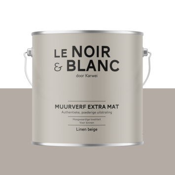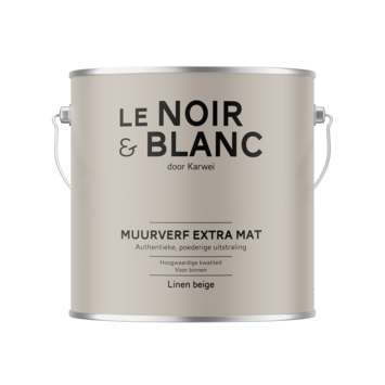 Met Le Noir & Blanc muurverf linen beige extra mat 2,5 liter geef je je muur een diepe en poederige uitstraling. De extra matte afwerking zorgt voor een zachte look zonder glans, waardoor kleuren rustig en vol overkomen. Deze verf kun je in de bouwmarkt of online laten mengen in elke kleur en is geschikt voor muren in droge ruimtes binnenshuis.