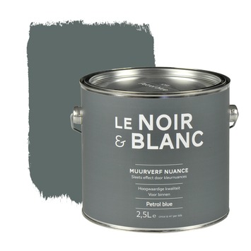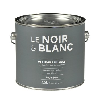 De Le Noir & Blanc muurverf nuance petrol blue 2,5 l maakt onderdeel uit van een zeer bijzondere serie verven in fraaie vergrijsde tinten. Door de toepassing van hoogwaardige grondstoffen wordt een rijke verf gecreëerd. Deze muurverf geeft bij gebruik in 2 lagen een sleets effect en als je de verf kris-kras met een blokkwast aanbrengt ontstaan er mooie kleurnuances. Hiermee is de verf een optimale verfraaiing voor je woning. Het blik bevat 2,5 liter muurverf in de kleur petrol blue, dit is genoeg voor een oppervlakte van zo'n 24 vierkante meter bij het aanbrengen van 1 laag.
