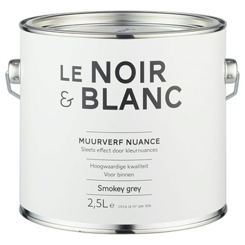 De Le Noir & Blanc muurverf nuance Smokey grey 2,5 l maakt onderdeel uit van een zeer bijzondere serie verven in fraaie vergrijsde tinten. Door de toepassing van hoogwaardige grondstoffen wordt een rijke verf gecreëerd. Deze muurverf geeft bij gebruik in 2 lagen een sleets effect en als je de verf kris-kras met een blokkwast aanbrengt ontstaan er mooie kleurnuances. Hiermee is de verf een optimale verfraaiing voor je woning. Het blik bevat 2,5 liter muurverf in de kleur Smokey grey, dit is genoeg voor een oppervlakte van zo'n 24 vierkante meter bij het aanbrengen van 1 laag.