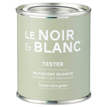 De Le Noir & Blanc muurverf nuance Tuscan Olive grey 100 ml maakt onderdeel uit van een zeer bijzondere serie verven in fraaie vergrijsde tinten. Door de toepassing van hoogwaardige grondstoffen wordt een rijke verf gecreëerd. Deze muurverf geeft bij gebruik in 2 lagen een sleets effect en als je de verf kris-kras met een blokkwast aanbrengt ontstaan er mooie kleurnuances. Hiermee is de verf een optimale verfraaiing voor je woning. Het blikje is een testerverpakking en bevat 100 milliliter verf in de kleur Tuscan Olive grey. Zo heb je de mogelijkheid om thuis te bekijken of de lak qua kleur en kwaliteit bevalt.