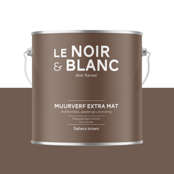 Met Le Noir & Blanc muurverf sahara brown extra mat 2,5 liter geef je je muur een diepe en poederige uitstraling. De extra matte afwerking zorgt voor een zachte look zonder glans, waardoor kleuren rustig en vol overkomen. Deze verf kun je in de bouwmarkt of online laten mengen in elke kleur en is geschikt voor muren in droge ruimtes binnenshuis.