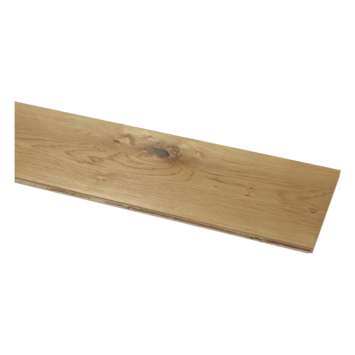 Dit Le Noir & Blanc parket rustiek naturel geolied eiken 15 mm 2,90 m² bestaat uit een extra brede 22 cm basisplank met een dikte van 15 mm. Deze plank is voorzien van een rustiek eiken toplaag met een naturel geoliede afwerking. Door de aanwezigheid van noesten, krijgt deze vloer een zeer authentieke uitstraling. De vloer leg je door middel van een tong-en-groefverbinding en dat zorgt voor een aantal aanzienlijke voordelen. Ten eerste verloopt het leggen gemakkelijk. Ten tweede kun je de vloer zwevend leggen en hoef je deze niet vol te verlijmen met de ondervloer, waardoor je veel minder lijm nodig hebt. Door de samenstelling van de plank is parket goedkoper in de aanschaf dan een vloer van massief hout. Ook werkt de vloer minder dan een vloer van massief hout. De planken van dit parket zijn reeds kant-en-klaar geolied en kunnen dus na het leggen direct worden belopen. Wel adviseren wij je de vloer direct na het leggen nog een keer extra in de olie te zetten.