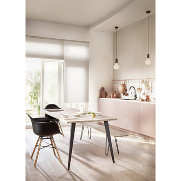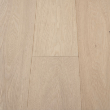 Dit Le Noir & Blanc select parket blank geolied eiken 14 mm 2,89 m² bestaat uit een basisplank, met een dikte van 14 mm, die is voorzien van een eiken toplaag met een blank geoliede afwerking. Doordat bij de keuze van de planken alleen planken zonder noesten zijn geselecteerd krijgt deze vloer een zeer rustige uitstraling. De vloer leg je door middel van een tong-en-groefverbinding en dat zorgt voor een aantal aanzienlijke voordelen. Ten eerste verloopt het leggen gemakkelijk. Ten tweede kun je de vloer zwevend leggen en hoef je deze niet vol te verlijmen met de ondervloer, waardoor je veel minder lijm nodig hebt. Door de samenstelling van de plank is parket goedkoper in de aanschaf dan een vloer van massief hout. Ook werkt de vloer minder dan een vloer van massief hout. De planken van dit parket zijn reeds kant-en-klaar geolied en kunnen dus na het leggen direct worden belopen. Wel adviseren wij je de vloer direct na het leggen nog een keer extra in de olie te zetten.