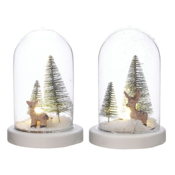 Het kerstseizoen is een seizoen vol met prachtige decoratie en verlichting. De sfeer binnen en buiten het huis ontwerp jij met jouw eigen creativiteit. Deze decoratieve stolp zorgt voor echte kerstsfeer in huis. De stolp bevat LED verlichting en werkt op AA batterijen. Binnen in de stolp zit er sneeuw, een hert en een boom. Deze prachtige kerstdecoratie is 10 bij 15,5 centimeter.