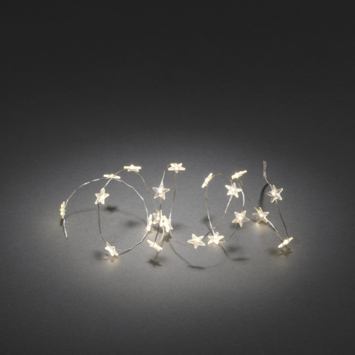 Creëer een sfeervolle en decoratieve ambiance in huis met het Konstsmide® Premium kwaliteit lichtsnoer van 20 transparante LED-lampjes op batterijen. Deze duurzame en energiezuinige sterretjes geven een warmwit licht van 2100K en hebben een handige ON/OFF/twinkle stand schakelaar, wat ze perfect maakt om een vaas, lantaarn, tafel, dressoir of kerststukje te decoreren, of takjes te verlichten door eromheen te wikkelen. Het snoer heeft geen stopcontact nodig, waardoor het zeer flexibel is en overal binnen kan worden gebruikt.