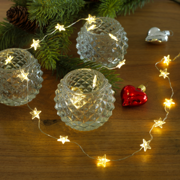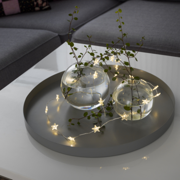 oeg een sfeervol en decoratief element toe aan je interieur met het Konstsmide® Premium kwaliteit lichtsnoer van 40 transparante/zilveren LED-lampjes op batterijen. Deze duurzame en energiezuinige sterretjes geven warmwit licht en hebben een handige ON/OFF/twinkle stand schakelaar, wat ze perfect maakt om een vaas, lantaarn, tafel, dressoir of kerststukje te versieren, of takjes te verlichten door eromheen te wikkelen. Het snoer heeft geen stopcontact nodig, waardoor het zeer flexibel is en overal binnen kan worden gebruikt.