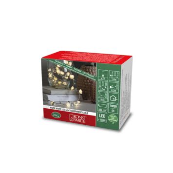 Prachtig decoratief lichtsnoer met 25 LED verlichte roosjes op batterij van het Premium merk Konstsmide. Verlichte snoerlengte 1.5 meter met 25 warmwitte duurzame en energiezuinige LED lampjes met witte roosjes en zilveren blaadjes en 6u timer. Zeer flexibel overal binnen te gebruiken doordat het snoer geen stopcontact nodig heeft. Geschikt overal in het interieur bijvoorbeeld op tafel, op dressoir of in glazen schaal of lantaarn. Glasoppervlak geeft ultiem sfeervol lichteffect. De lichtkleur van 2100K is prachtig en sfeervol. De verlichte lengte van eerste tot laatste lampje is 1.5m. Het aansluitsnoer naar de batterijbox (3x AA, niet meegeleverd) is 30cm. Totale lengte 1.8m. De spacing -dit is de afstand tussen de lampjes- bedraagt 6cm. Het snoer werkt circa 130u op 1 set batterijen. Het lichtsnoer heeft een EMC keurmerk: stoort niet op andere elektrische apparataten en/of draaloze netwerken als WiFi en en Bluetooth. Dit artikel wordt geproduceerd in een SA8000 (Social Accountability)/BSCI (Business Social Compliance Initiative) gecertificeerde productielocatie. Geef je kerst extra sfeer met dit mooie en duurzame kwaliteitsproduct!