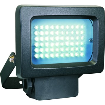De led schijnwerper is 60-LED's schijnwerper. Door het gebruik van led-licht is deze lamp extra energiezuinig en heeft de lamp een lange levensduur. De lamp zit in een zwarte metalen behuizing.