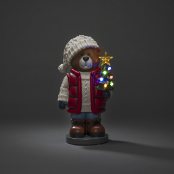 LED staande teddybeer met kerstboom, 8 LED multicolor, 38.5x21cm bxh, 6u timer, op batterij 3x AAA (excl), binnen